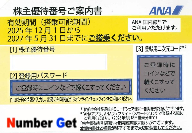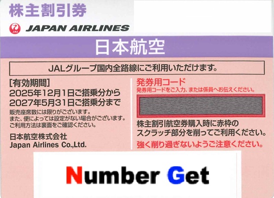 事前に空席があるかどうか、各航空会社ホームページにてご確認ください。 - ■「株主優待券」は販売しておりません。券の購入ではなく、「発券に必要な番号の購入」となります。